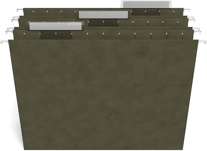 - Standard green 11 pt. folders hold up to wear and tear. Durable coated hangers for easy sliding. Letter size. Tabs and inserts included for placement in 5 tab positions. Paper made from 10% recycled fiber with at least 10% post-consumer fiber. 3 tab (1/3 cut)cut tabs, includes tabs and inserts. Minimum 10% post-consumer recycled material.