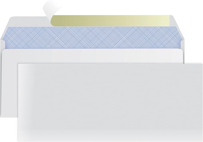 #10 Envelopes Letter Size Self Seal | 100 Business Mailing Security Peel and Sealing Envelope | 100% Tinted | no 10 White Windowless Legal Regular Plain Envelops Pack | 4-1/8 x 9-1/2 Inches | 24 LB