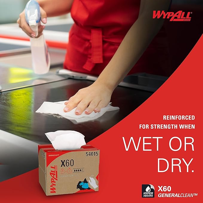 - 236 Sheets/Box; 1 Box of WypAll GeneralClean X60 Multi-Task Cleaning Cloths/Case; 236 Sheets/Case; White; Brag Box; Strong and Absorbent Towels