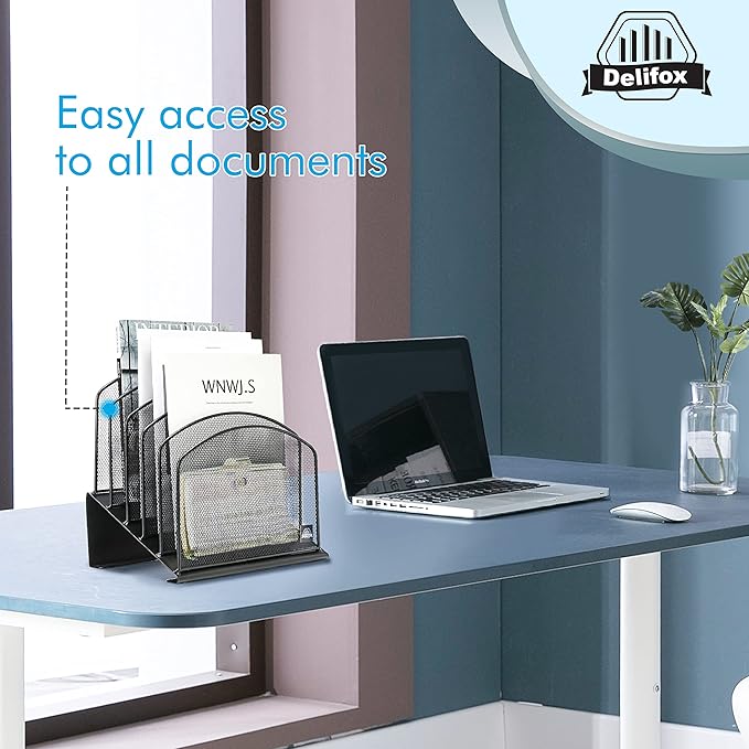 - ▶ SUFFICIENT SPACE FOR STORAGE. Delifox 5-compartment desktop file organizer is large enough to hold and classify many document or papers so as to eliminate worry of document run-off and keep track of files, folders, and other important papers