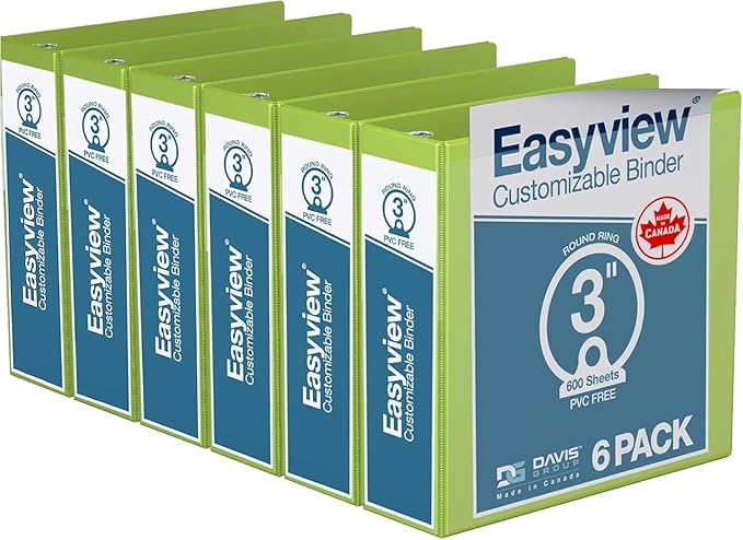 Easyview Premium 3-Ring Binders with Clear-View Covers and Round Rings, Binders for School or Office, 3 Inch, Pack of 6, Lime Green