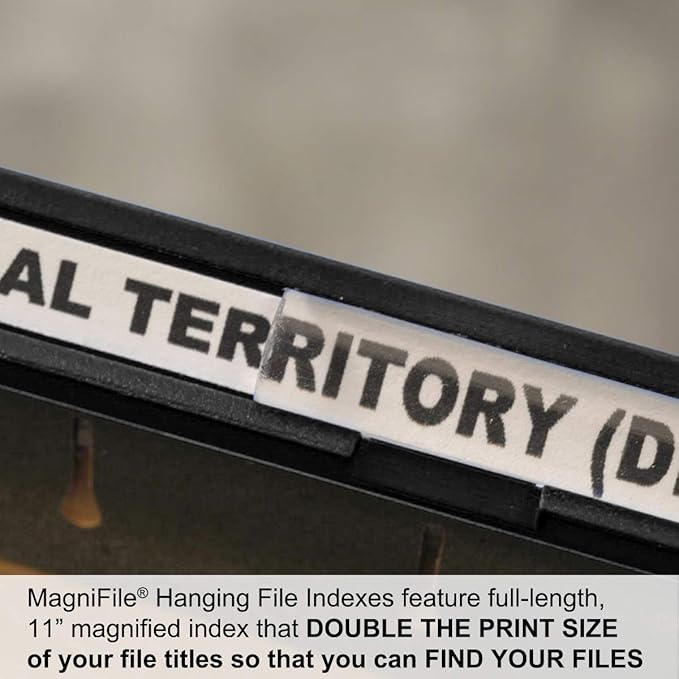 Ultimate Office MagniFile Insertable Hanging File Folder Tabs. Indexes That Double The Size of Your File Titles to Find Files Fast! (Set of 20), Black