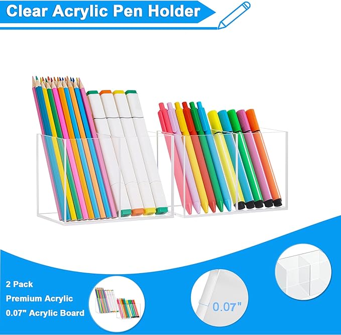 - 🖍️【Clear Acrylic Pen Holder】: Made of great acrylic quality, crystal clear, no scratches or cracks, sturdy, and easy to clean. No sharp edges or cloudy to keep safe and excellent clarity.