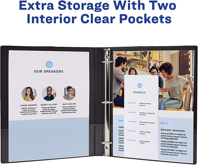 - Sturdy 0.5-inch binder can easily hold up to 100 sheets of 3-hole punched 8.5" x 11" papers, dividers and sheet protectors; extra storage with 2 interior clear pockets