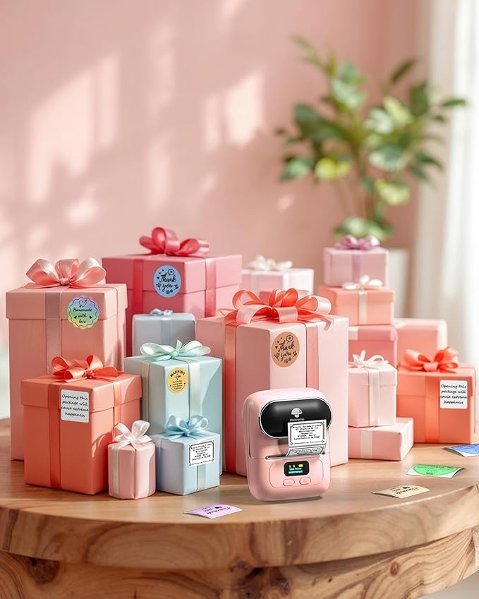 Phomemo M110 Label Maker Machine- with 3 Label Bluetooth Label Maker for for Business Labeling, Barcode, Office, Cable, Retail, with Fonts Choose, Icons, Templates, Pink