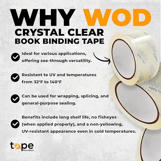 - For your Home or Business – Fix, Patch, Seal, and Protect with WOD CST22CC Crystal Clear Packaging Tape, either if you are looking to seal your packages when shipping merchandise to be well protected, as well as repairing book pages or covers, securing labels on book bindings, laminating your important documents, cards, photo albums, menus, or tags.