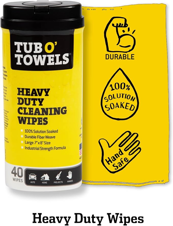 - Heavy duty cleaning wipes tackle the tough stains like oil, grease, ink, marker and more
