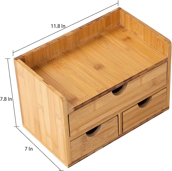 Rustic Distressed white 3-Tier Bamboo Desk Organizer with 3 Drawers Mini Storage Shelf For Desk, Toiletries Vanity Office Supplies (bamboo)