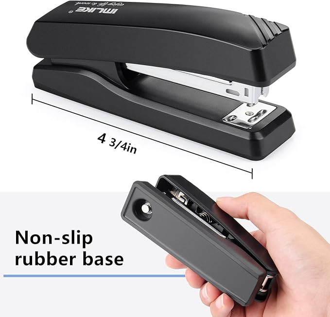 - 【Non-slip base】Metal construction with non-slip base. Full rubber base stabilizes the stapler and prevents it from slipping during use.