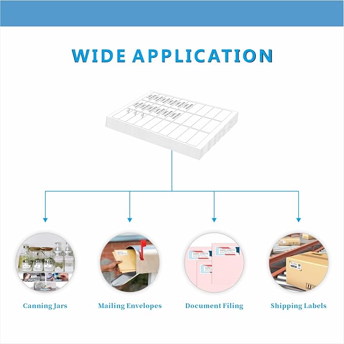 - 【STANDARD SHEET SIZE】-- Blank white address labels sheet size: 8.5" x 11", per sheet comes with 30 labels that size: 1 x 2-5/8" (2.5 by 6.6cm), 100 sheets total 3000 labels give more labels to organizing your item. Labels are big enough, you will get a good amount of space to work with and to be seen easily after printing and writing