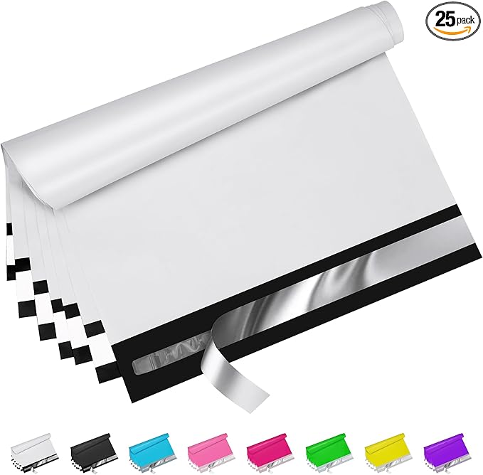 White Poly Mailers 10x13 Inch 25 Pcs, Strong Adhesive Shipping Bags for Clothing, Self-Sealing and Waterproof Mailing Envelopes, Privacy Protected Mailer Bags for Small Business