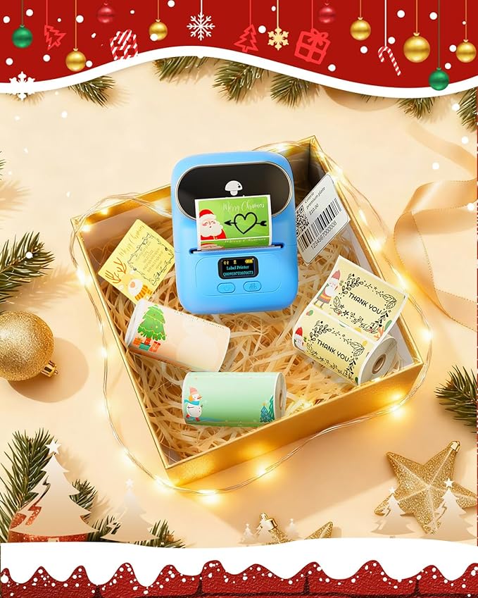 Phomemo Label Maker with 3 Labels- M110 Portable Bluetooth Label Maker Machine for Small Business, Barcode, Address, Logo, Clothing, Jerwery, Compatible with iOS & Android, Blue