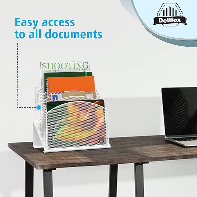- ▶ SUFFICIENT SPACE FOR STORAGE. Delifox 5-compartment desktop file organizer is large enough to hold and classify many document or papers so as to eliminate worry of document run-off and keep track of files, folders, and other important papers