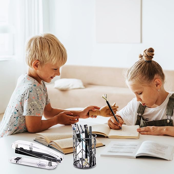 - 【Robust & Durable】Our stapler, long tail clip, scissors, ruler, pen, staples made of high-end acrylic and black-plated metal material, transparent and shiny like glass, naturally elegant and beautiful, sturdy and durable.These black desk accessories are perfect for home, school, and office decor and use.