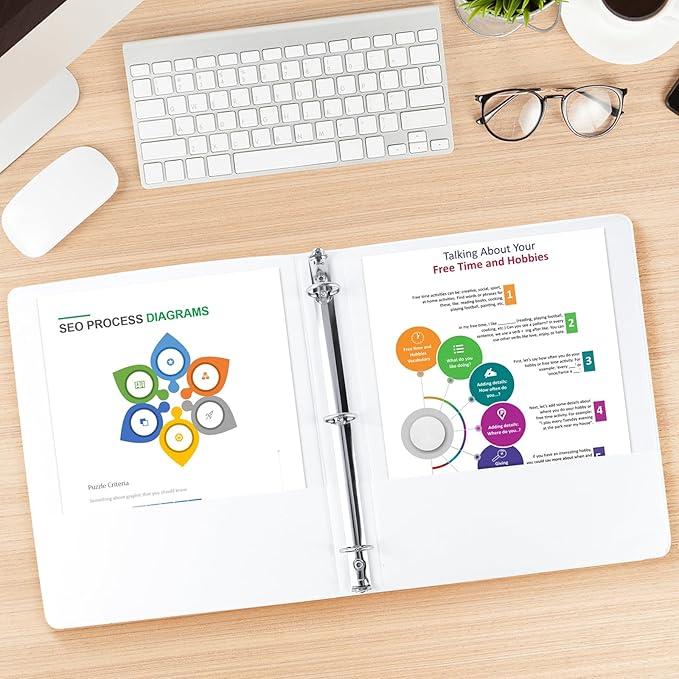 - 1" white binders hold us Letter size 8-1/2" x 11" paper, round ring can hold 200+ paper capcity, 12 packs.