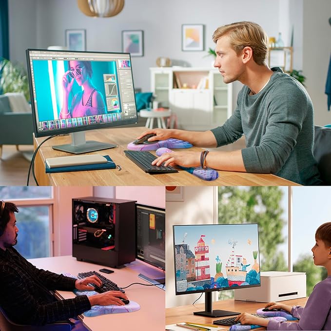 - 【Anti-Slip PU Base】Our mouse pad and keyboard wrist rest feature a non-slip PU base that provides enhanced stability compared to rubber bases. Whether you're working on a desk, bed, or couch, the pad stays firmly in place. The edges are designed to resist curling even after prolonged use, ensuring durability.