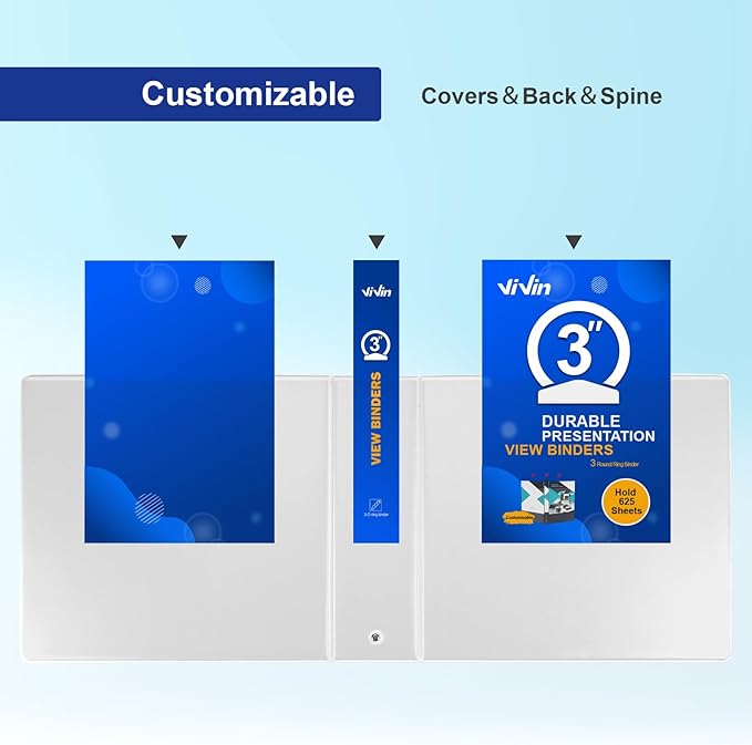 - Various Capacity: ViVin 3 ring binders are available in various sizes, accommodating different paper capacities, making them versatile and suitable for different storage needs. Fit letter size documents or 3-hole folders.