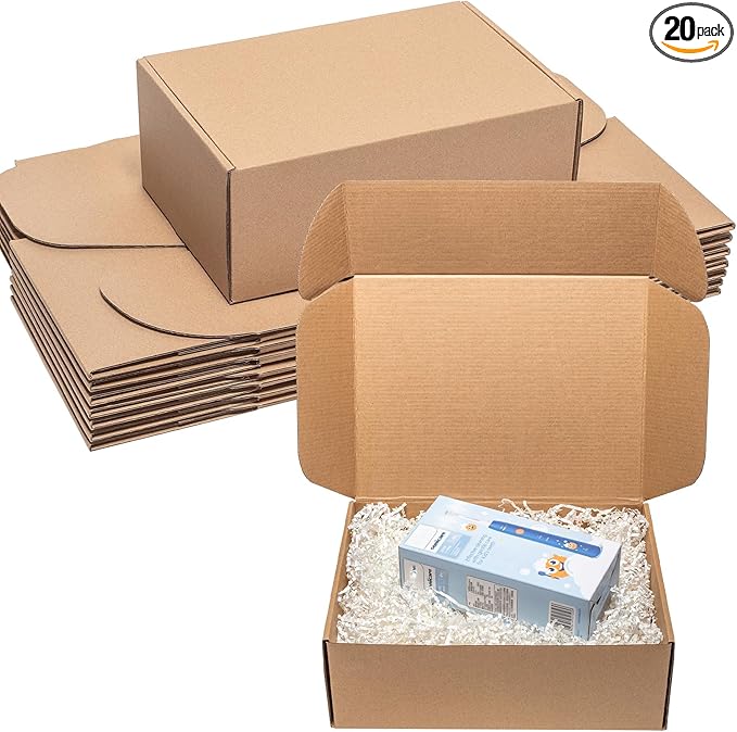 Shipping Boxes 12x9x4 Inches 20 Pack Corrugated Cardboard Mailing Boxes for Small Business, Kraft Medium Literature Mailer Packaging Supplies Brown