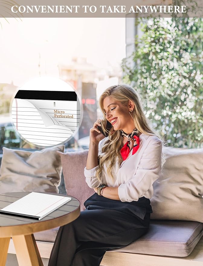 - 【MICRO PERFORATED】- Notepads 8.5 x 14 sheet is designed with perforations at the top. Sheets measure 8-1/2" x 13-1/4"" when torn out. These lined tablets rows of small holes let you separate a graphing sheet from the rest of the pad without damaging the binding. white Paper pads 8.5 x 14 allowing you to remove pages effortlessly without damaging the sheet.