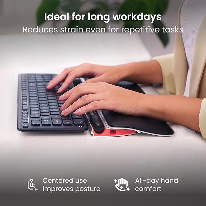 - ✅ CONTOUR ROLLERMOUSE RED - ERGONOMIC, CENTRALIZED DESIGN: Rollermouse Red sits directly beneath your keyboard to eliminate reaching for a mouse. This centralized position helps keep your hands within shoulder width, reducing strain on your neck, shoulders, forearms and wrists relief. ✅ Wireless ✅ Plus