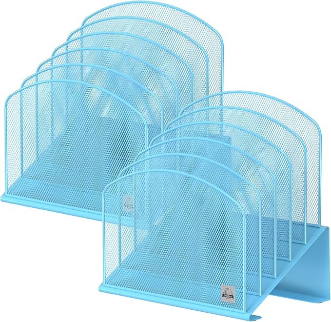 2Pack Inclined Desk File Organizer, 5-Section Vertical File Folder Holder Stand Metal Rack File Sorter for Office Classroom Desktop Organization,Blue
