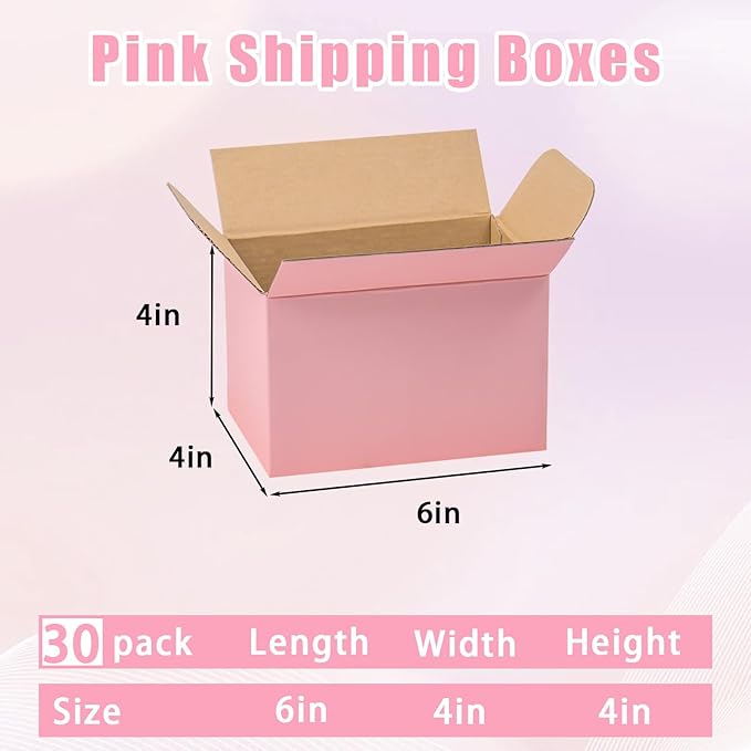 Small Pink Shipping Boxes 6x4x4 Inches, 30 Pack Mailer Boxes, Corrugated Cardboard Boxes for Packaging, Shipping, Mailing