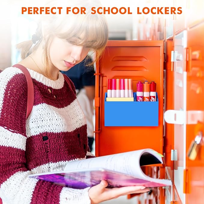 BEYGORM Magnetic Dry Erase Marker Holder for Whiteboard,Non-slip Acrylic Magnet Pen Holder for Fridge Refrigerator,Locker Organizer for Work,Locker Accessories,Pencil Cup for Desk(Blue)