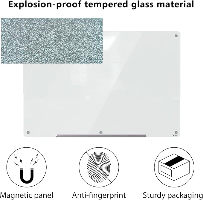 - Spacious & Versatile: Enjoy a generous 6 x 4ft (72 x 48 in) frameless glass whiteboard perfect for office meetings, classroom lessons, or home brainstorming sessions