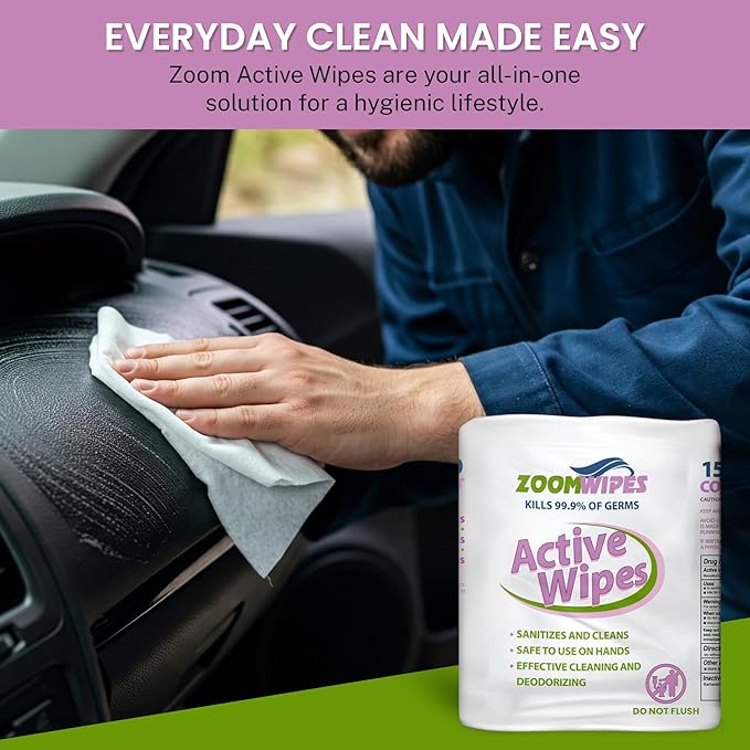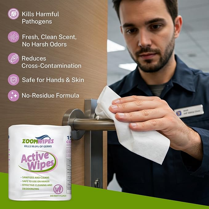 - 🚫 NO HARSH ODORS, JUST CLEAN: Zoom Active Wipes are bleach-free, fragrance-balanced disinfecting wipes that eliminate dirt, grime, and germs without overpowering chemical smells. These fresh scent wipes offer sensitive users a pleasant, subtle aroma, making them great for home cleaning, healthcare facilities, and public spaces. Use these deodorizing wipes on hard, non-porous surfaces—ideal for office desks, fitness equipment, and kitchen countertops.