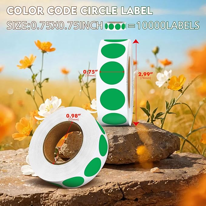 - Quantity and Size:10 rolls of 10000 pieces of 0.75 – inch round green stickers that meet the marking needs of various scenarios