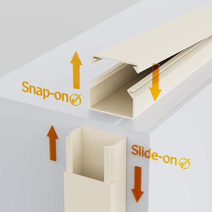 - Effortless Setup with Enhanced Snap System : Transforming your space is VERY EASY with EVZA cord hider. Our innovative Attach & Snap design ensures a hassle-free experience, allowing you to effortlessly open and close the cable hider with a simple click-on-and-off mechanism. Simplify cable management in your home or office effortlessly with our premium wire covers for cords.