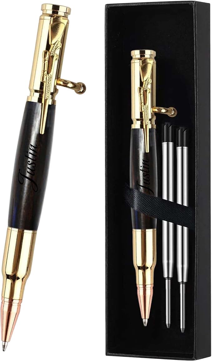 Personalized Bolt Action Pen, Free Engraved Wood Metal Ballpoint Pen with 2 Refills, Customized Pen with Name, Custom Gift for Birthday, Father's Day, Christmas (Gold-Dalbergia cultrata Benth)