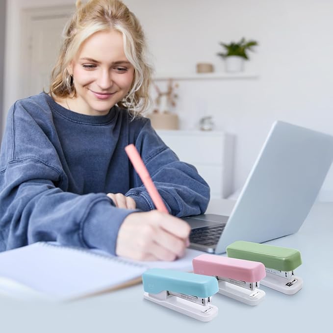 - 💚【Cute Design】Stapler has lovely color matching and fashionable appearance, which is very suitable for home school and office. Candy color matching brings good mood to your work and life