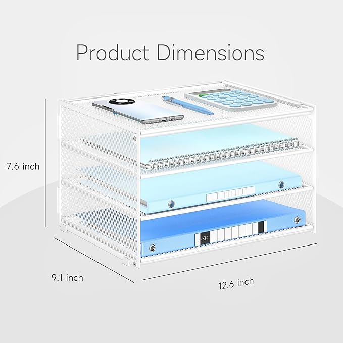 - 3-Tier Space-Saving Design: Maximize your desk organizer space with Lavatino’s vertical stacking design. Holds letter/A4 papers, folders, and magazines in 3 separate tiers—keep documents visible & accessible without clutter (Size: 12.6" x 9.1" x 7.6")