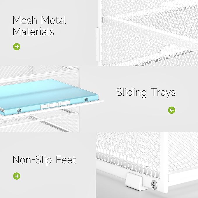 - Desk Paper Organizer Slide Tray Design: Includes 2-piece adjustable slide tray with smooth glide mechanisms for one-handed operation. Features ergonomic accessibility and adjustable dividers to accommodate varying item sizes