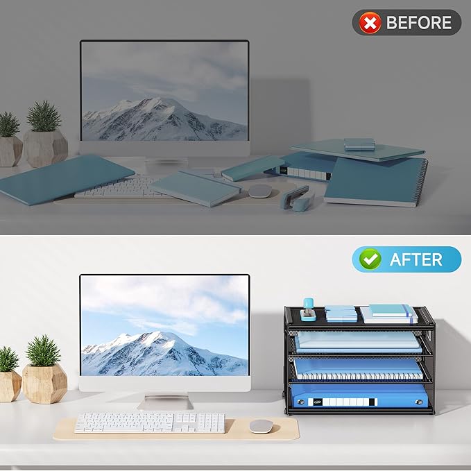 - Multi-Purpose Desktop Organizer: Perfect for offices, homes, or schools—neatly store bills, mail, catalogs, notebooks, or even crafting supplies. Slim profile fits tight spaces next to printers or monitor