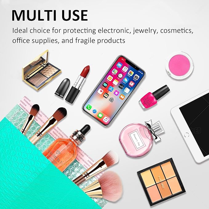 - Medium Double-layer Bubble Mailers Perfect Dimensions: The medium bright teal bubble mailers outer 8.5x12'' inches usable size 8x12 inches double-layer padded bubble mailers, perfect size for medium items like jewelry, makeup, cards, cd, lips, photos, books, clothing and homes office supplies business packing