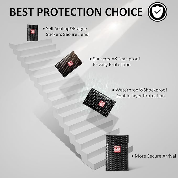 - Bubble Envelopes & Fragile Stickers Use Efficient: Bulk pack of 25 bright black bubble mailers with 24 fragile stickers for cost-effective shipping packaging solutions for small businesses