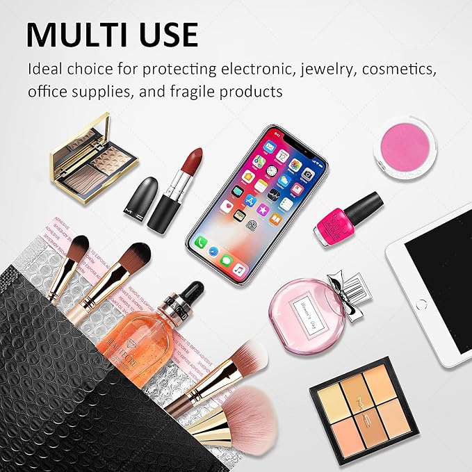 - Medium Double-layer Bubble Mailers Perfect Dimensions: The medium bright black bubble mailers outer 6.5x12 inches usable Size 6x10 inches double-layer padded bubble mailers, perfect size for medium small items like jewelry, makeup, cards, cd, lips, photos, books, clothing and office supplies business packing