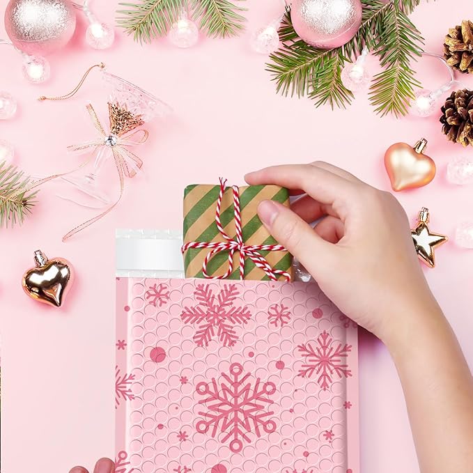 Metronic Christmas Bubble Mailers 6x10" 50pc Usable Size 6x9,Waterproof Mailing Padded Envelopes for Small Business,Cushioning Bubble Wrap Mailer Bags,Shipping Envelopes for Gift,Small Items Snowflake