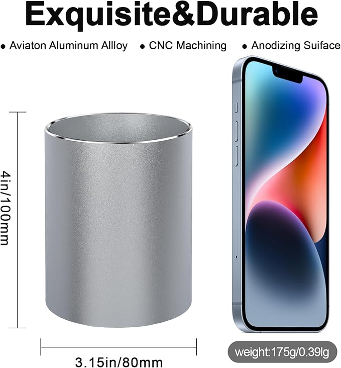 - 【HIGH QUALITY METAL】Made of high quality metal and through hard oxidation, the net weight of aluminum pen holder is 0.42lb, sturdy and durable. Unlike other plastic/acrylic pencil cups on the current market, our metal pencil holder is not easy to break, and has a longer lifespan to use. No worries about anything, if you got any problems about the product, we promised to offer a 3-YEAR WARRANTY for every customers.
