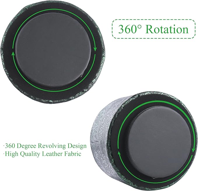 lizimandu Round Leather Art Supply Organizer,Remote Control Holder,360 Degree Spinning,Multi-Functional Pencil Holder,4 Compartments Desktop Stationary Organizer(1-Carved Metal Green1)