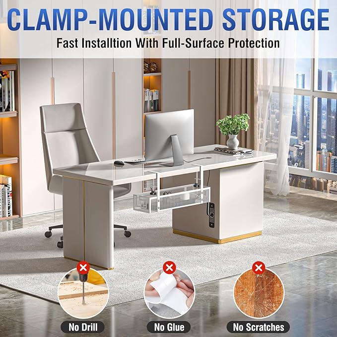 - 【Easy Installation & Desk Protection】 Set up the cable management tray in under 3 minutes with no drilling required. It includes anti-scratch rubber pads to protect your desk surface, unlike other organizers that may damage your furniture.