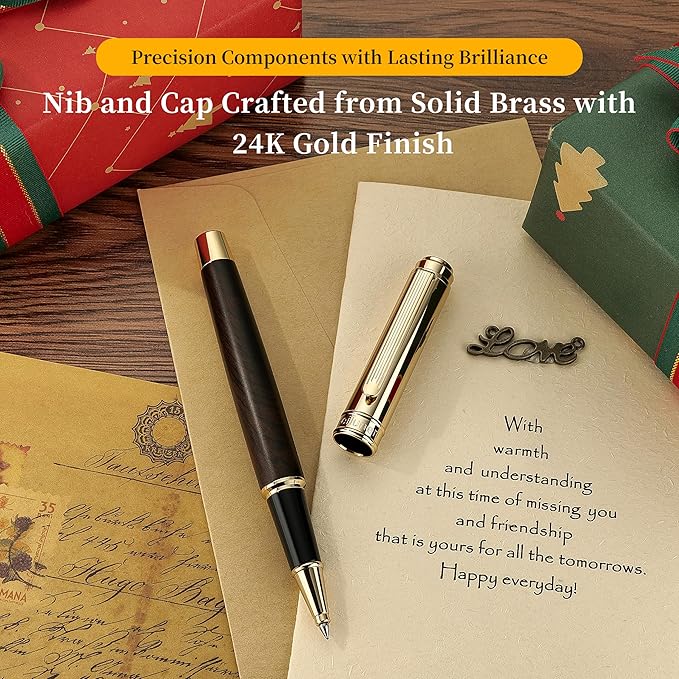 - Stunning Contrast of Wood & Gold——This rollerball pen features a striking modern design that pairs the deep, rich grain of Black Sandalwood with the brilliant luster of 24K Gold plating. The rich contrast ensures it stands out as a unique and stylish tool.