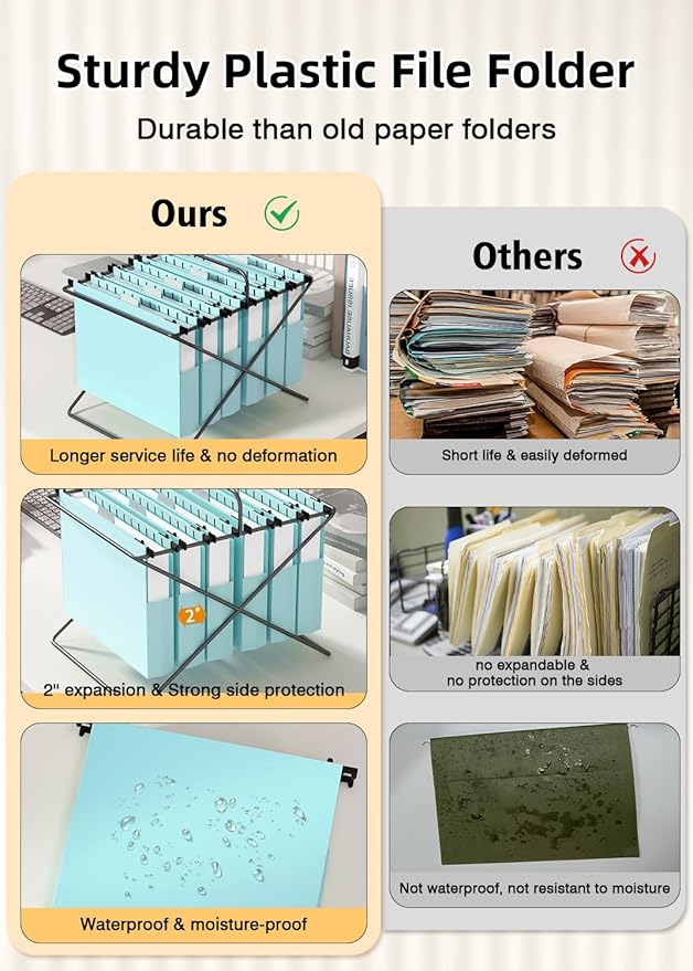 - [PLASTIC HANGING FILE FOLDER] The file cabinet folders hanging is made of PP plastic, sturdy and tear resistant, not easily dirty, and has a longer usage time compared to paper materials