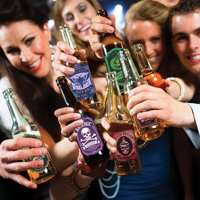 - SIZE: 3.5” x 2.25” Perfect for Halloween, Voodoo, and Gothic Decor – Designed to transform plain jars and bottles into realistic potion containers, these creepy poison labels are ideal for witch-themed parties, haunted houses, gothic home décor, and DIY Halloween displays.