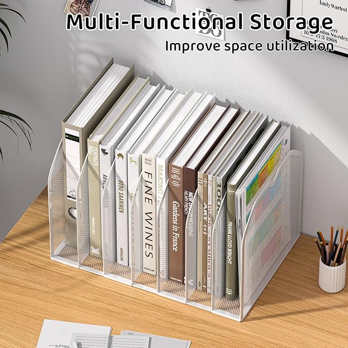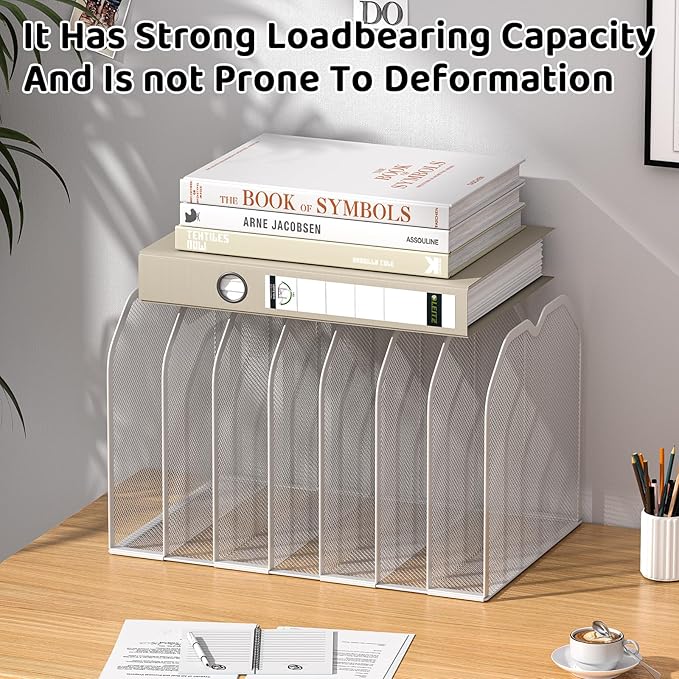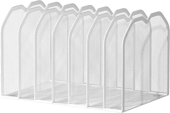 White 7-Section File Folder Organizer for Desk – Metal Vertical File Holder, Desktop File Organizer Vertical Stand, Letter/A4 Folder Rack, Upright File Sorter, Office Paper Organizer
