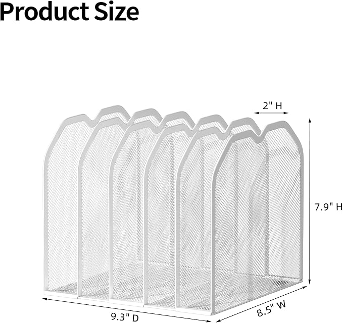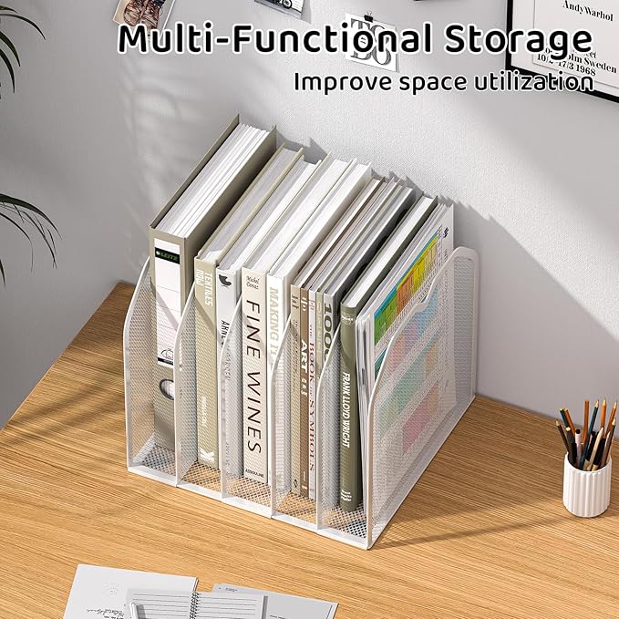 White 5-Section File Folder Organizer for Desk – 8.5"×9.3" Metal Vertical File Holder, Desktop File Organizer Vertical Stand, Letter/A4 Upright File Sorter