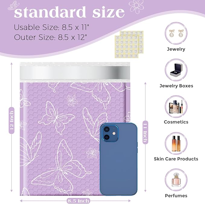 Metronic Bubble Mailers 8.5x12" 240 Pack Usable Size 8.5x11,Waterproof Mailing Padded Envelopes for Small Business,Cushioning Bubble Wrap Mailer Bags,Shipping Envelopes for Gift,Small Items Butterfly