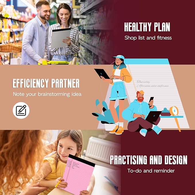 - 【Perforated Legal Pad】The colored 8.5 x 11 notepads of lined paper perforated top edge allows for easy and neat removal of individual sheets. Also, there will not be ripping in irregular situations. So you can effortlessly keep the notes you want and separate the ones you don't, whether for work, school, or personal use, these pink 8.5 x 11 writing notepad sheets will make your life easier. Perfect for daily professional notes, to-do.